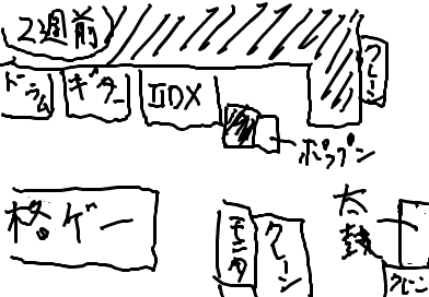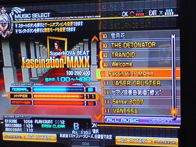 70分の試験時間を終えたのがおよそ10:30(^ω^)… これは ゲーセンに行かないでどうする てなわけで2週間ぶりにゲーセン行ってきました \(^o^)/ 久々に行ったらゲーセンの筐体の配置が変わってました ↓ 弐寺の順番待ちは格ゲーのほうに並ぶんですが 待ってるところのすぐ隣に太鼓が来ていたのですげぇ耳障りでした 太鼓のプレイ者が今日は異常に多すぎたせいで耳が麻痺してますorz 日曜のだけあって人の量ハンパなかったです… ですが12回ほどプレー出来ましたね 今日は弐寺やる人があまりいなかったです^^; 今回は主にスコア更新を(コラ 20曲ほど潰しましたがそれでも鳥には届きませんでしたorz (今回の最高がマチコの唄(灰)のAAA-9かなんかだったような やっぱり家庭用とは勝手が違いますね^^; (FIREFIRE灰とリトプリ灰落ちたし あとは… 六段に再挑戦 41%⇒53% 達成率上がりましたw 浄化とディストレは前回よりごっそり減らされましたorz まぁその分tracesとMOONが残せたのが良かったというわけですね そして家庭用でFIREFIREとVがそれなりに押せるようになったということで 七段にも再挑戦 結果としては FIREFIRE、Vで予想以上のミスカウントを叩き出し コンチェで死亡orz サファリまでいけるとたかくくってすいませんでしたm(_ _)m 達成率は 24%⇒28% となぜか増加 ってかこの後にサファリなんて地獄だろ( `Д´) (~サファリ冒頭) てーれーれ てーれーれ てーれーれれ ガシャン!(閉店 orz