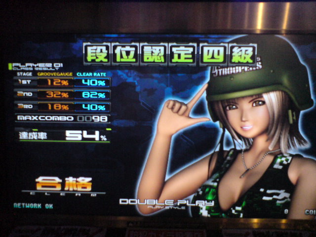 一週間前くらいにDPを始めました 家庭用HS・GOLDで☆3までの曲をやったり ☆3でも難しいのはやべぇむじぃです HSはきついです GOLDは☆1~3が4曲しかないので正直微妙です あとは10thとREDとDDのDPをやらないといかんなぁ なんだかんだでDPの面白さに惹かれつつありますww そいで先週の金曜に軍寺でDP四級をとりました アップもせずにやったらゲージが減るわ減るわww そしたら上の通り達成率は54%でした えーと…次は3級ですが ラストにLove Again…が入ってるので無理感がプンプン( ´ω`) それ以前に全曲☆4(猫又→湘南→Loveアゲ)なんですね 無理だねこりゃwwww 今度譜面を見てみることにします あとSPに関しては特に成長なし AC筐体では☆10が全くと言っていいほど越えられてませんorz 冥灰とか越えられない時点で泣けますorz あ、従兄の結婚式に出席してきました 参加は初めてでしたがいいもんですね なんか感動しましたww あと披露宴の料理にも感動しましたww あんなにうまいものなんですねww さいきん更新怠ってる上に絵も描いてません 酷く堕落してます 学校も始ったし気持ちを切り替えていこうと思います