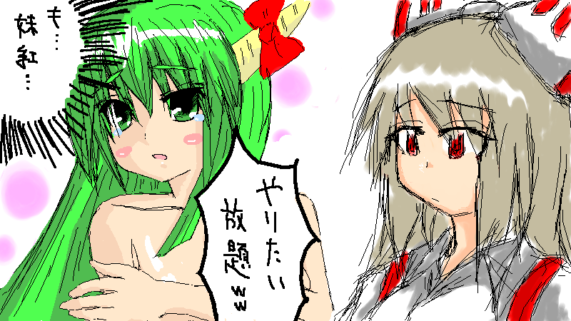 今年もよろしくお願いします(^ω^) 新年1発目のデジ絵 神奈子は本当に可愛いですw カリスマもあるし敵う所敵無しだと思うんd(ry 久々にcoolierさんの絵板でカキカキして参りましたが (^q^)<こんなかんじでいいですか 年末のこと ・29日 コミケ2日目参加のため川崎の知人宅に泊めてもらったのですが テレビ見たり絵を描いたりして気付いた時には明朝4時 (^q^)<ムツゴロウさんが麻雀やってたらそりゃ見入ってしまうでしょww ・30日 コミケ(2日目)行ってきました 結局5時に川崎を出て6時過ぎあたりに到着 8時半あたりにチケットを頂いてサークル入場 チェックしている内にいよいよ開会 …と思ったのも束の間 今回の東方スペースの混み具合は異常でした 壁サークルさんの周りはりんかい線始発状態 正直ここまで混んでる状態はこれまでイベントに参加して初めてでしたぜ('A`) 最近怖いなぁ…この増え具合は怖い でも買い物もほぼ完遂できて ファンである絵師様にスケブも描いて頂けたのでホッコリでした(^^) ・31日 3日目も行く予定でしたが体力が持たなかったため休養 2日目終了後から知人と自室で年越し 寝たり絵を描いたり まぁこれはこれで充実していたと思いますw ・1日 ずっと絵描いてました ・2日~ ぐで~ とまぁこんな感じで年初めからゆったり過ごしております そんなゆるゆるな俺ですが今年も是非よろしくお願いします^^ 例大祭の当落早く出ないかな…